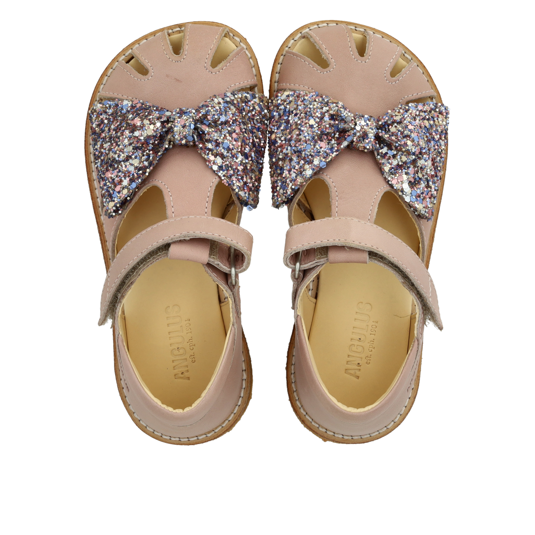 Sandal med glittersløjfe og velcrolukning