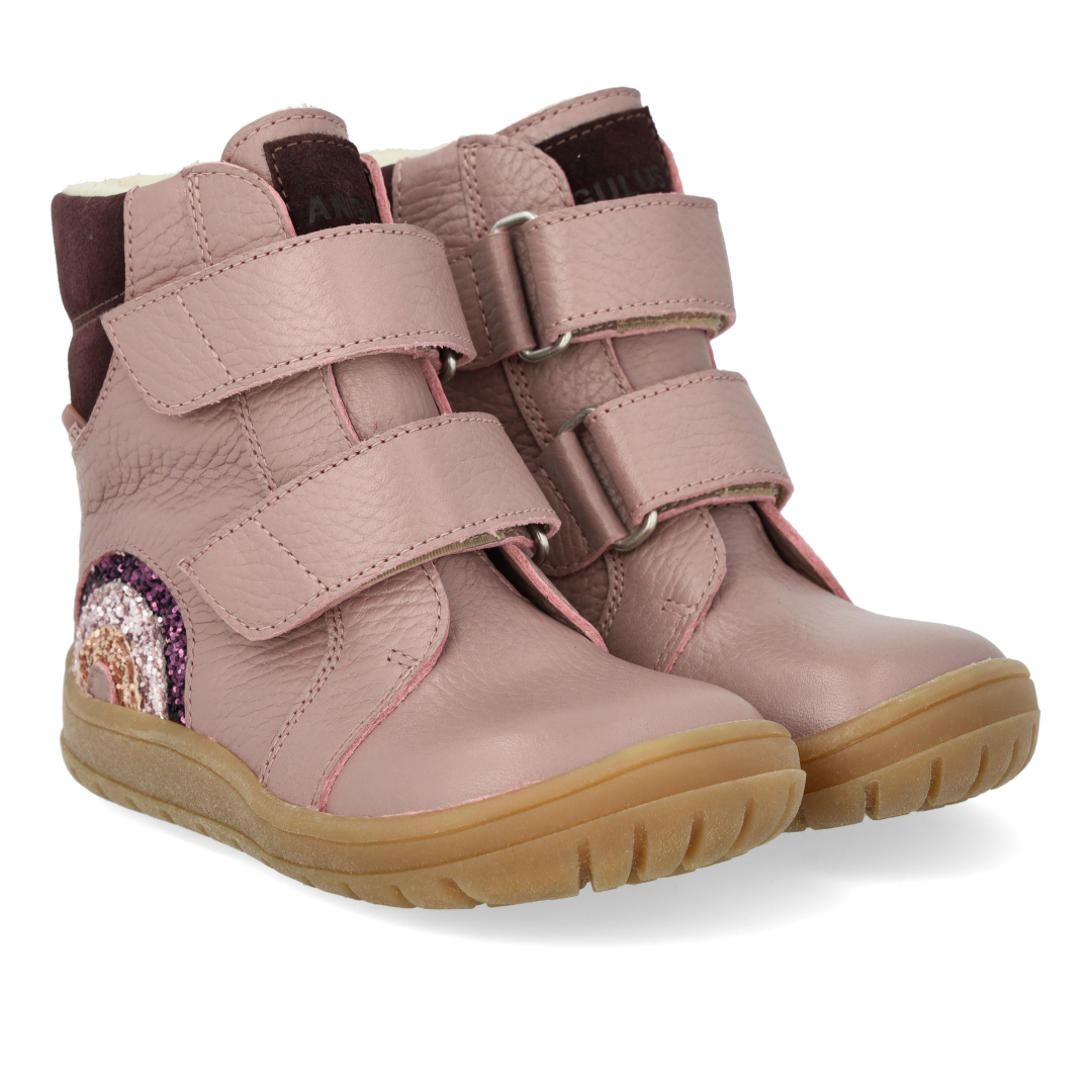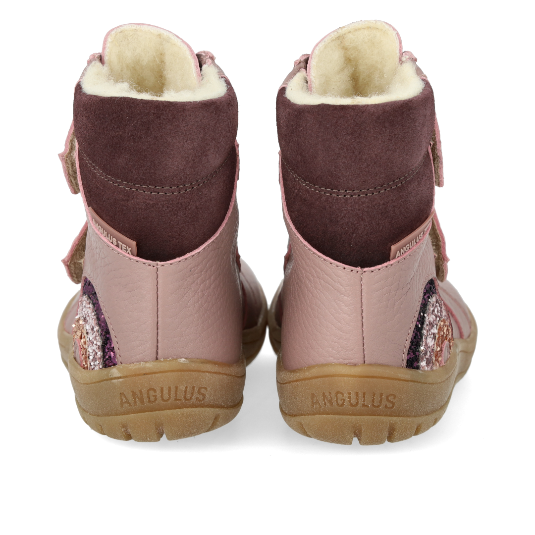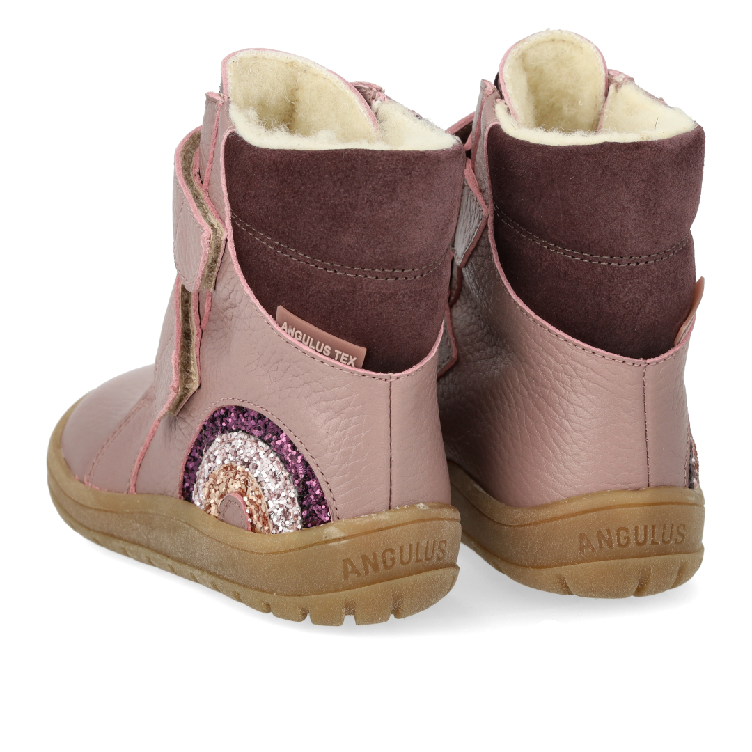 TEX-støvle med uldfoer og funklende glitterregnbue, der er designet til at holde små fødder varme og tørre, uanset vejret. Støvlen har justerbare velcroremme, kontrast detalje med logo på tungen, kromfrit og åndbart uldfoer, fast hælkappe med vatteret kontrastkrave for ekstra komfort og støtte, samt en blød og fleksibel ANGULUS gummisål med rummelig form, som giver ekstra plads til tæerne. Udformet i naturligt og åndbart skind med PFAS-fri TEX-membran. Designet i Danmark og håndlavet med kærlighed i Portugal. Mål altid barnets fod inden du køber, så du får købt den rigtige størrelse. Vi anbefaler et voksetillæg på 1-1,5 cm.