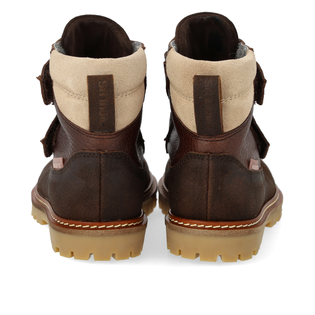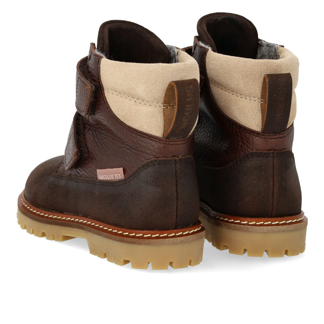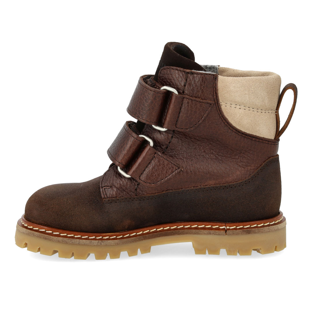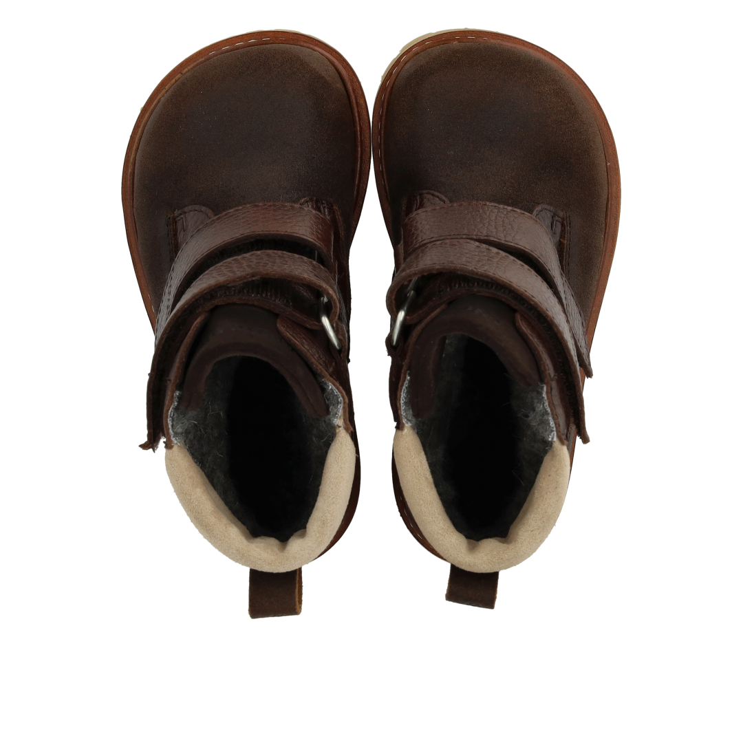 Velcro TEX-støvle i læder med ekstra slidstærke detaljer og blødt merino uldfoer, der er designet til at holde små fødder varme og tørre, uanset vejret. Skoen har justerbare velcroremme for optimalt personligt fit, vatteret indersål, en fast hælkappe med polstret ruskindskrave for ekstra stabilitet, komfort og støtte, praktisk logohælstrop, der gør det nemt at få støvlen af og på, og en let, blød og fleksibel gummisål med dekorativ stikningsrand. Udformet i åndbart skind med PFAS-fri TEX-membran og 100% merino uldfoer. Designet i Danmark og håndlavet med kærlighed i Portugal. Mål altid barnets fod inden du køber, så du får købt den rigtige størrelse. Vi anbefaler et voksetillæg på 1-1,5 cm.