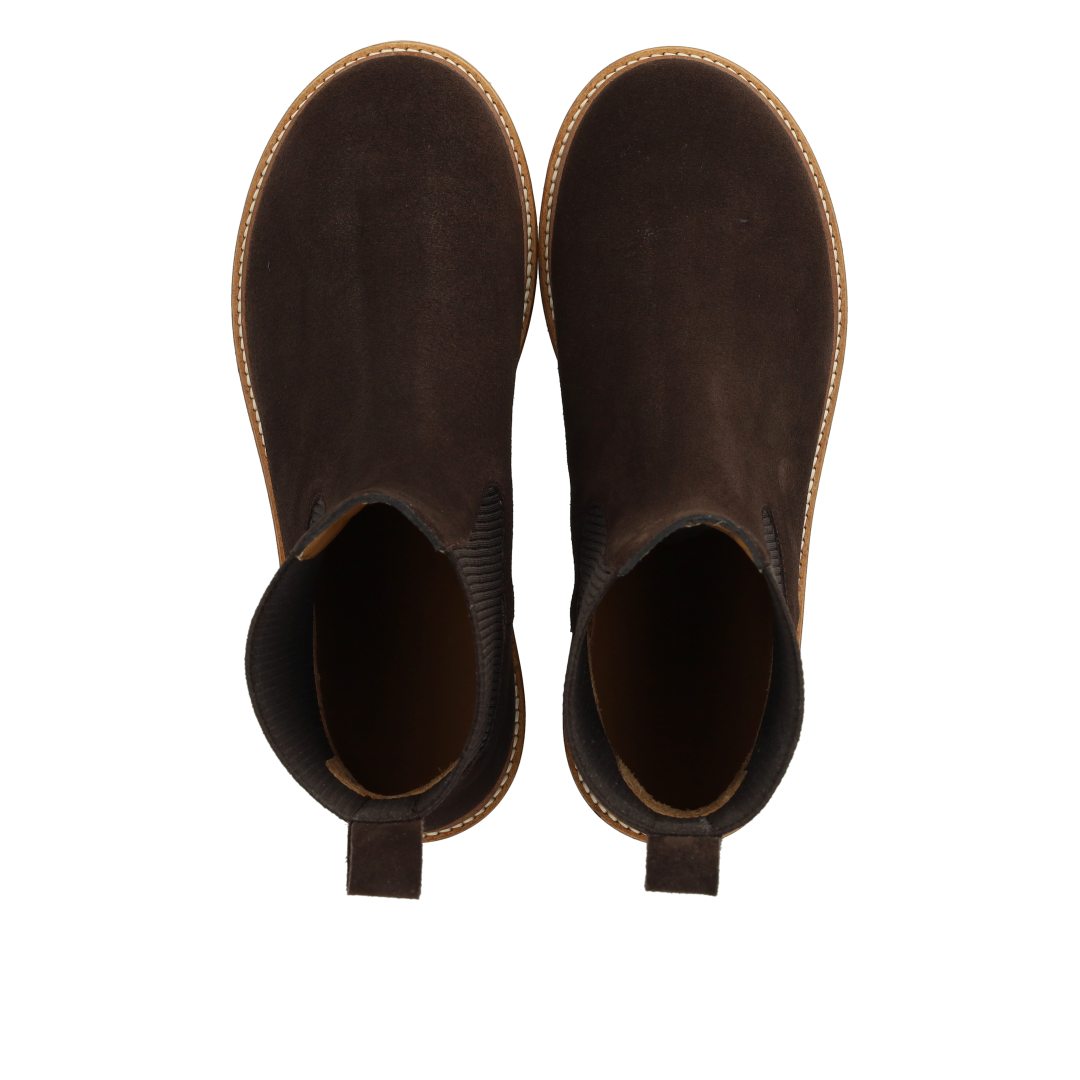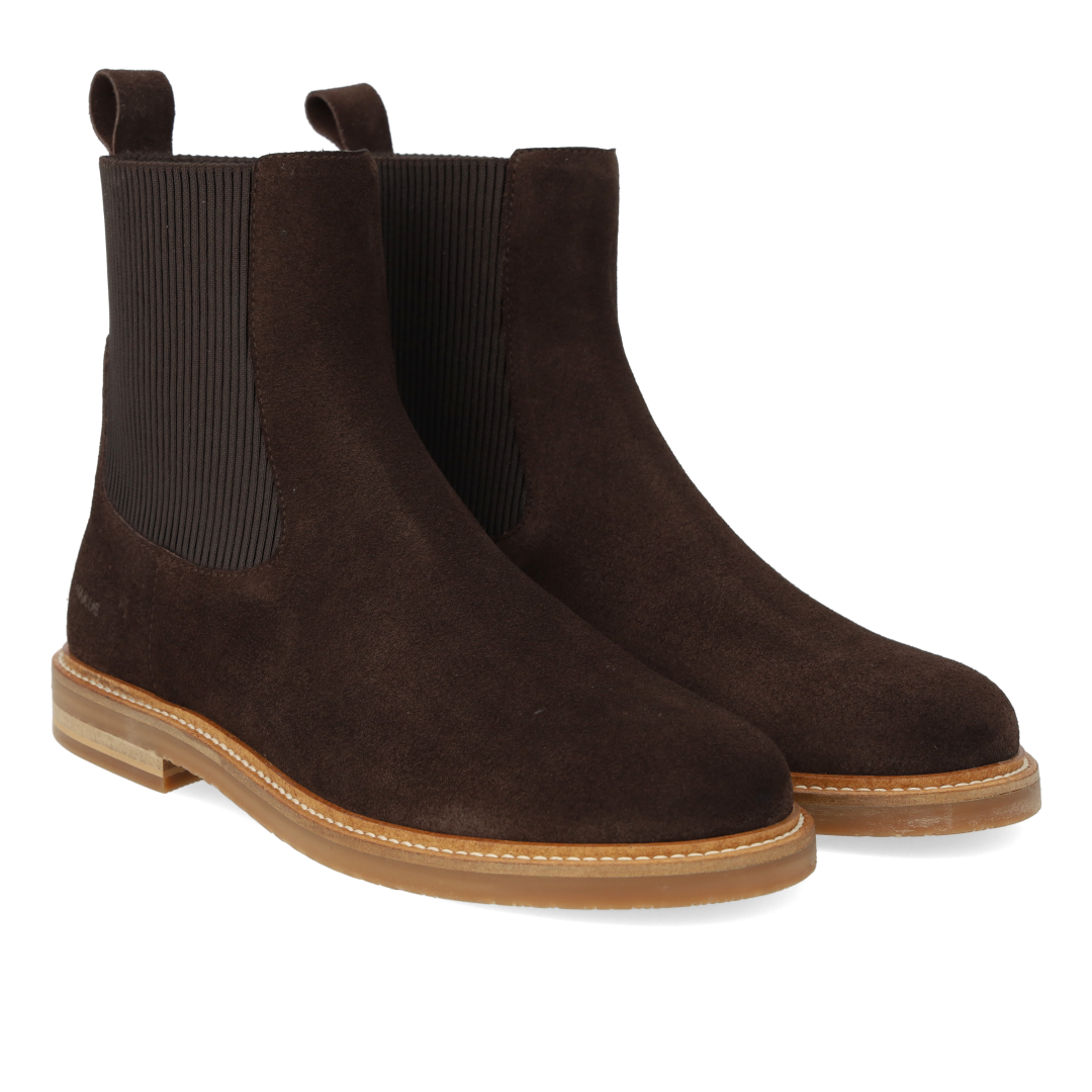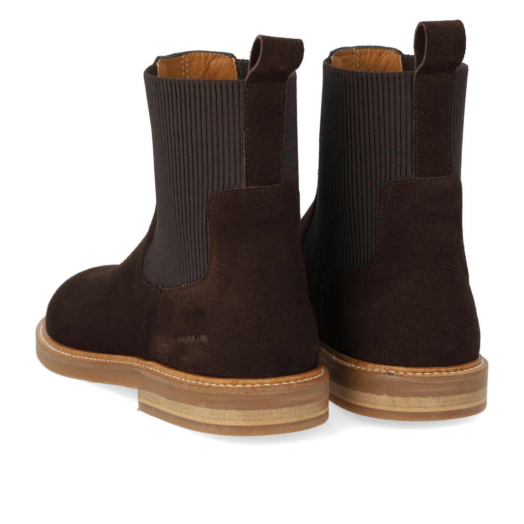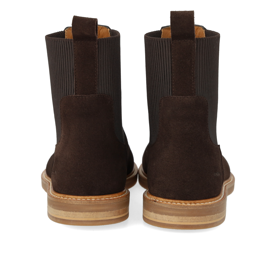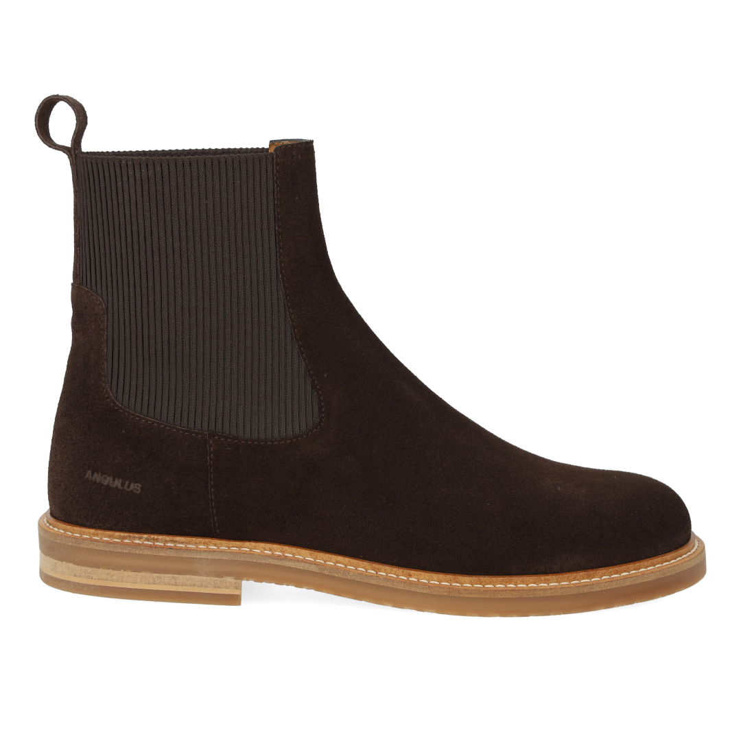 Klassisk Chelsea støvle med rummelig pasform. Støvlen har en rundet snude, fast hælkappe, præget logo på siden, funktionel ribelastik langs siderne og bagpå for ekstra fleksibilitet samt hælstrop, der gør det nemt at få støvlen af og på, vatteret indersål, kromfrit læderfoer og en let, blød og fleksibel ANGULUS logo gummisål. Udformet i naturligt og åndbart skind. Designet i Danmark og håndlavet med kærlighed i Portugal.