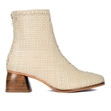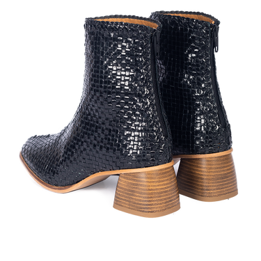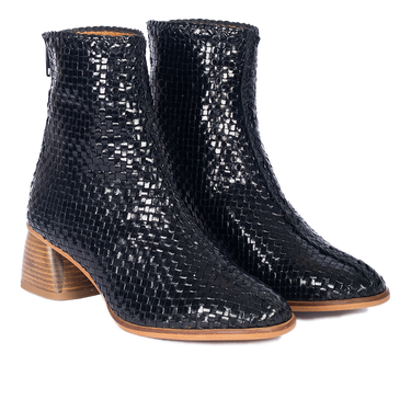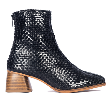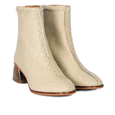 Håndflettet læderstøvlet med skulpturel blokhælstyle: 7810-10220721.699,00 DKK /36 | 37 | 37½ | 38 | 38½ | 39 | 39½ | 40 | 41 | 42