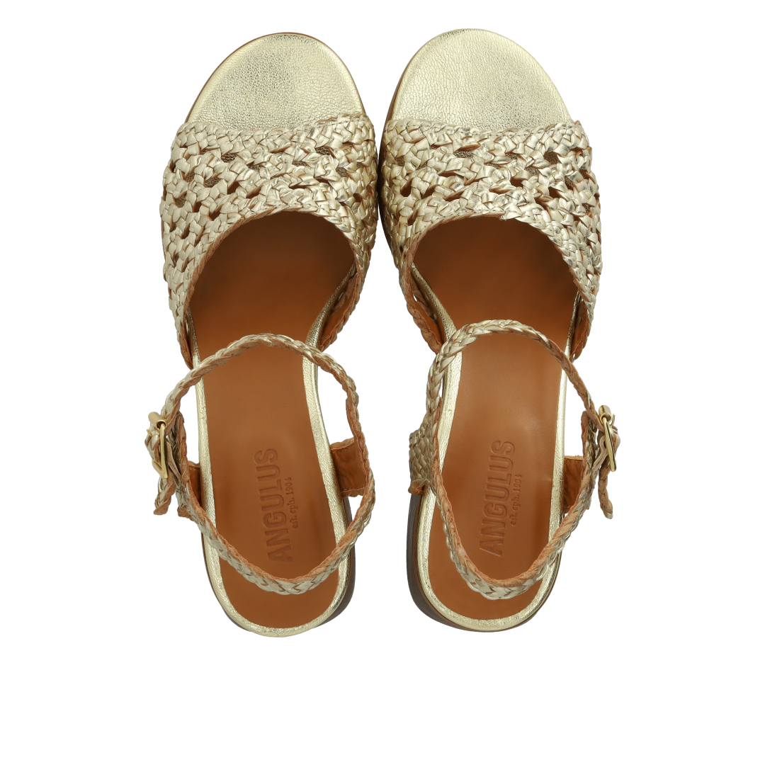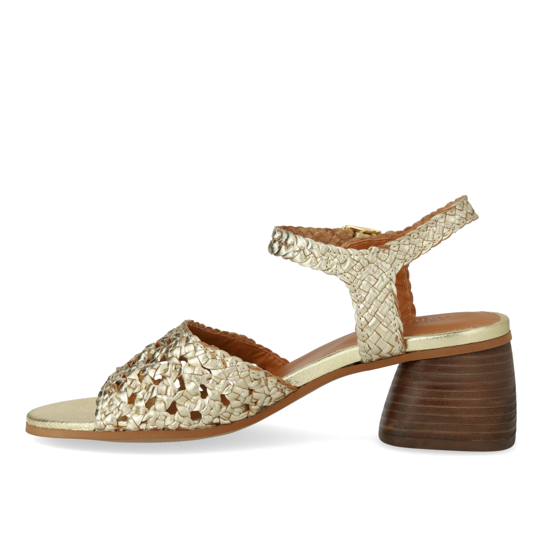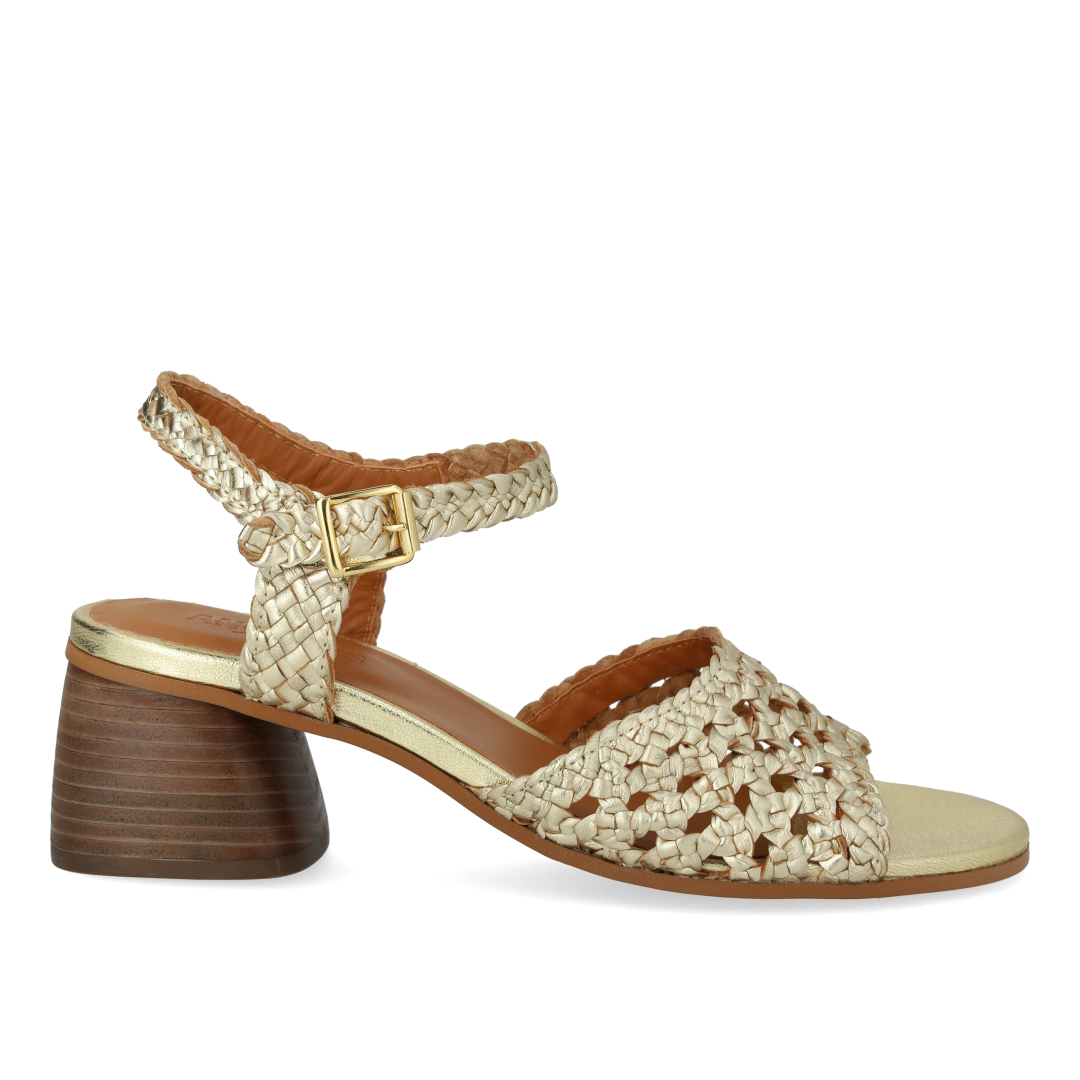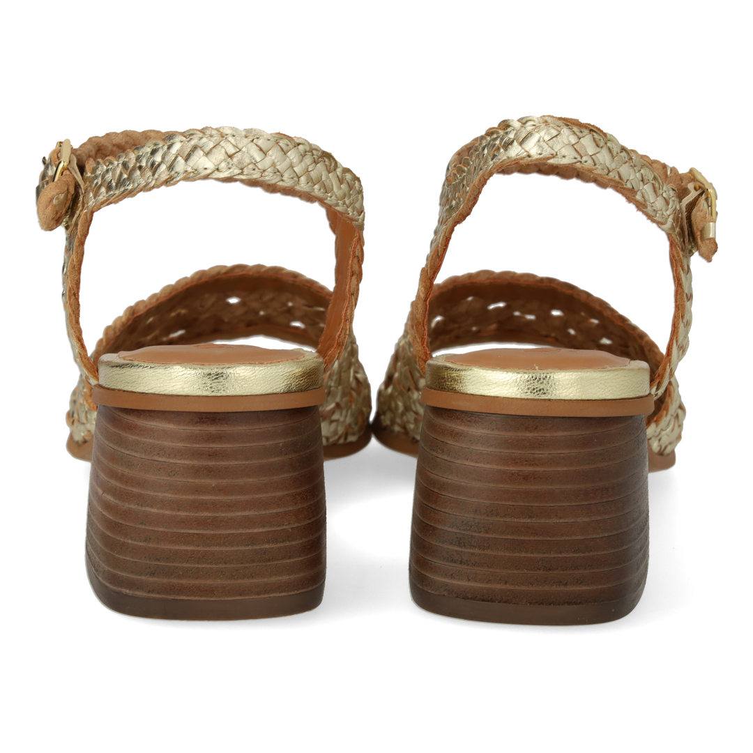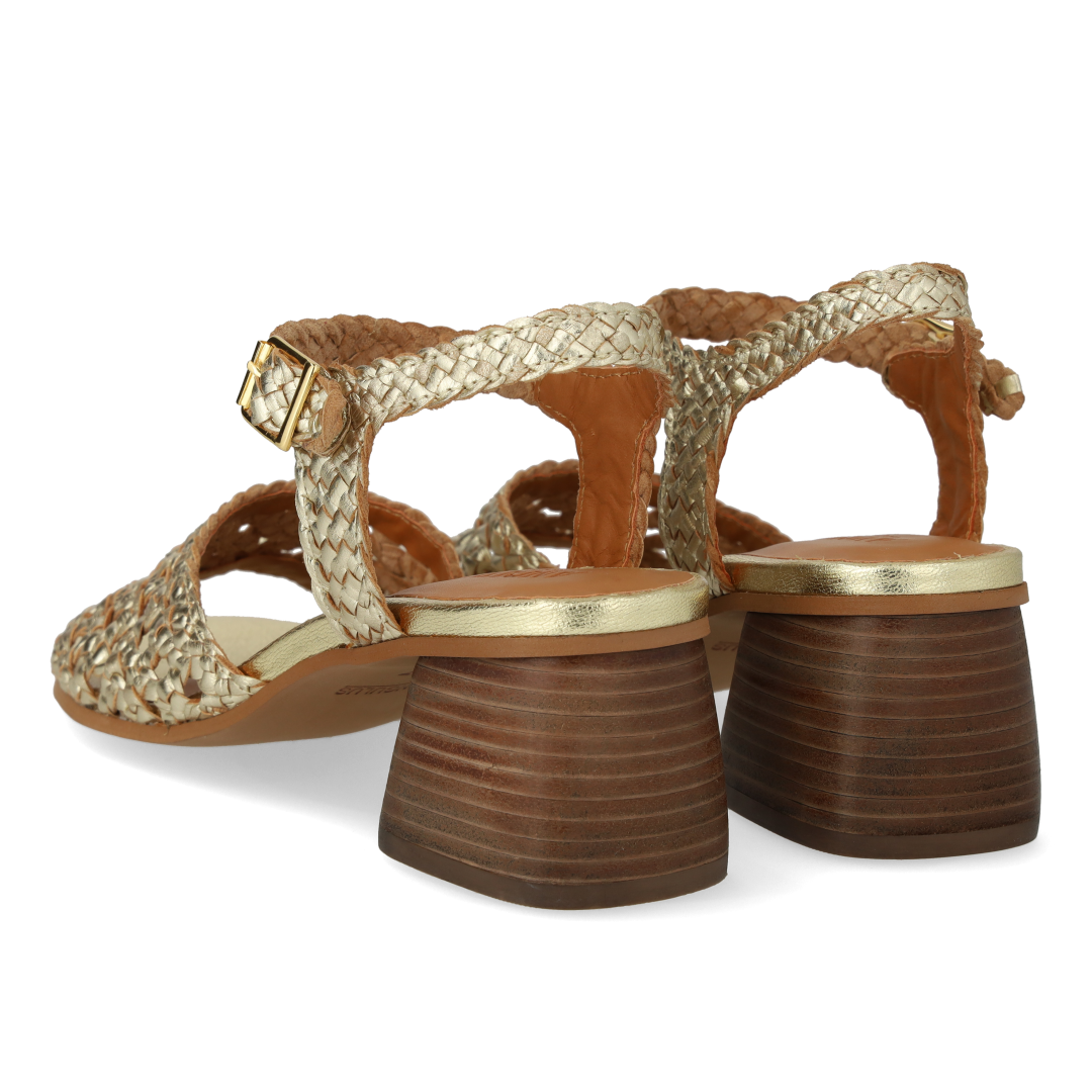Håndflettet sandal med skulpturel hæl