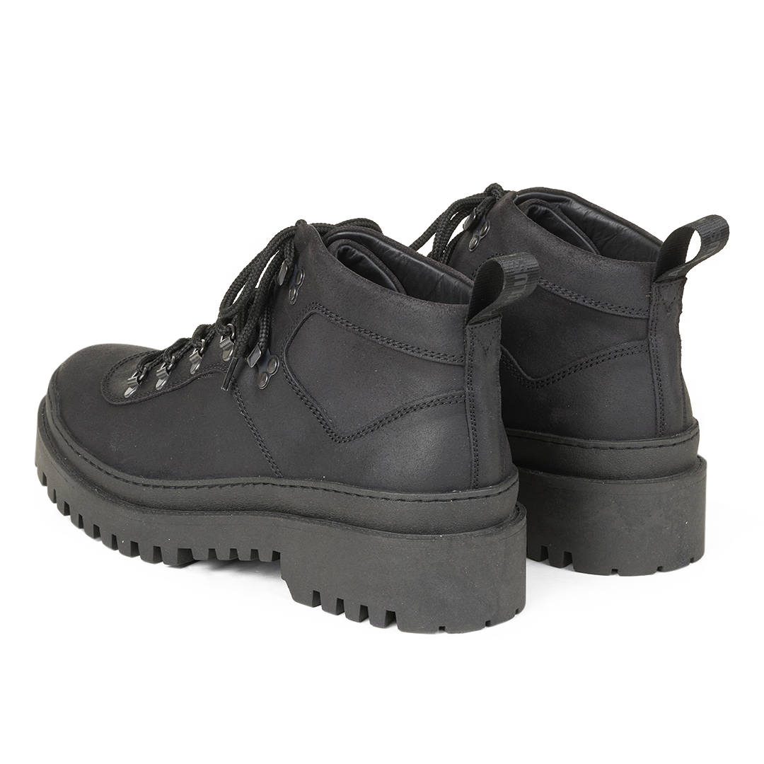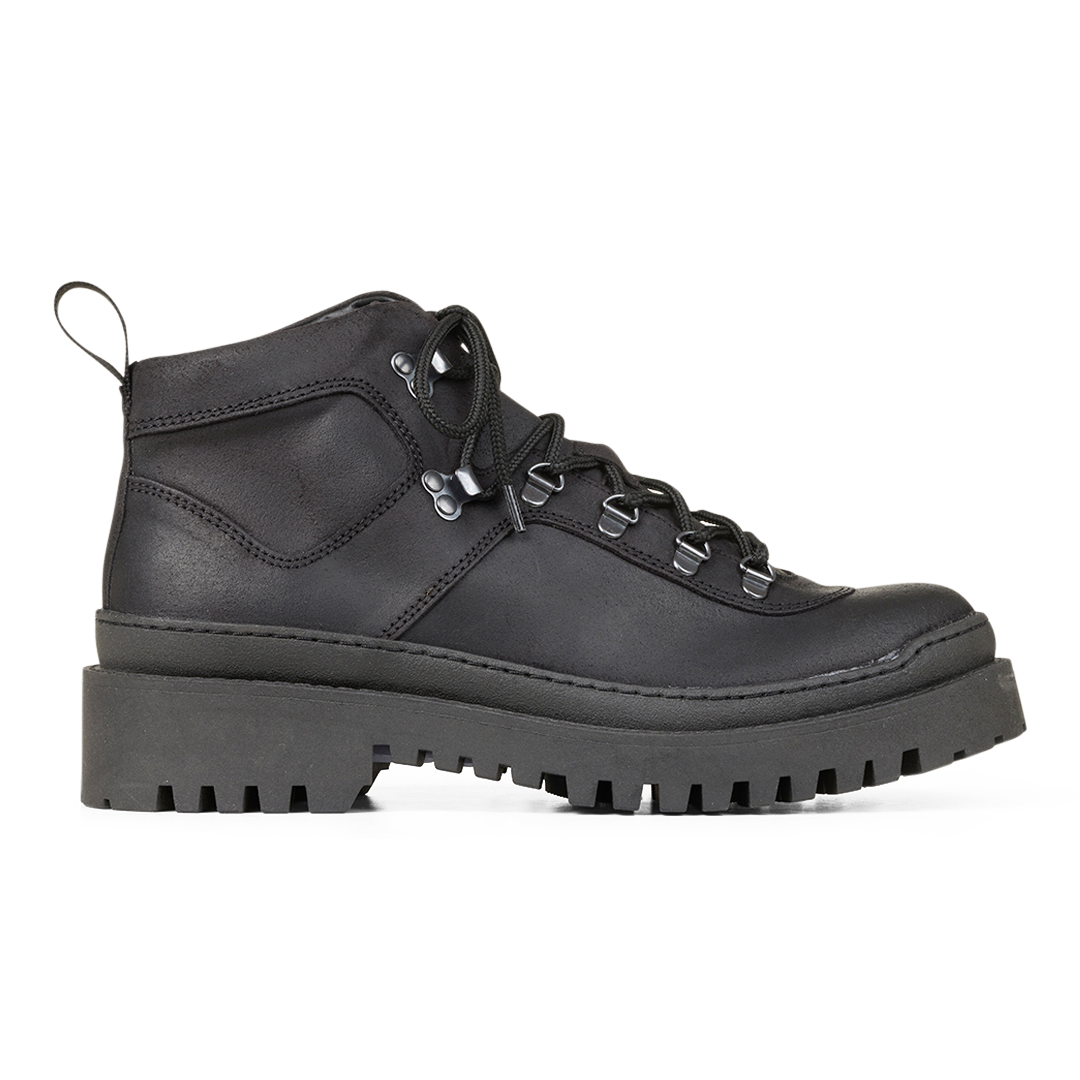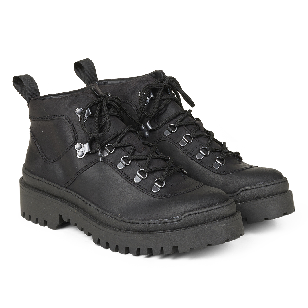 Snørestøvle i rå split coupe læder, der er ekstra slidstærk. Støvlen har en rund snude, justerbar bomuldssnøre, logostrop, detaljer i langhåret ruskind, vatteret indersål, kromfrit lædersål og en let og fleksibel sort tracksål. Udformet i naturligt og åndbart skind. Designet i Danmark og håndlavet med kærlighed i Portugal.