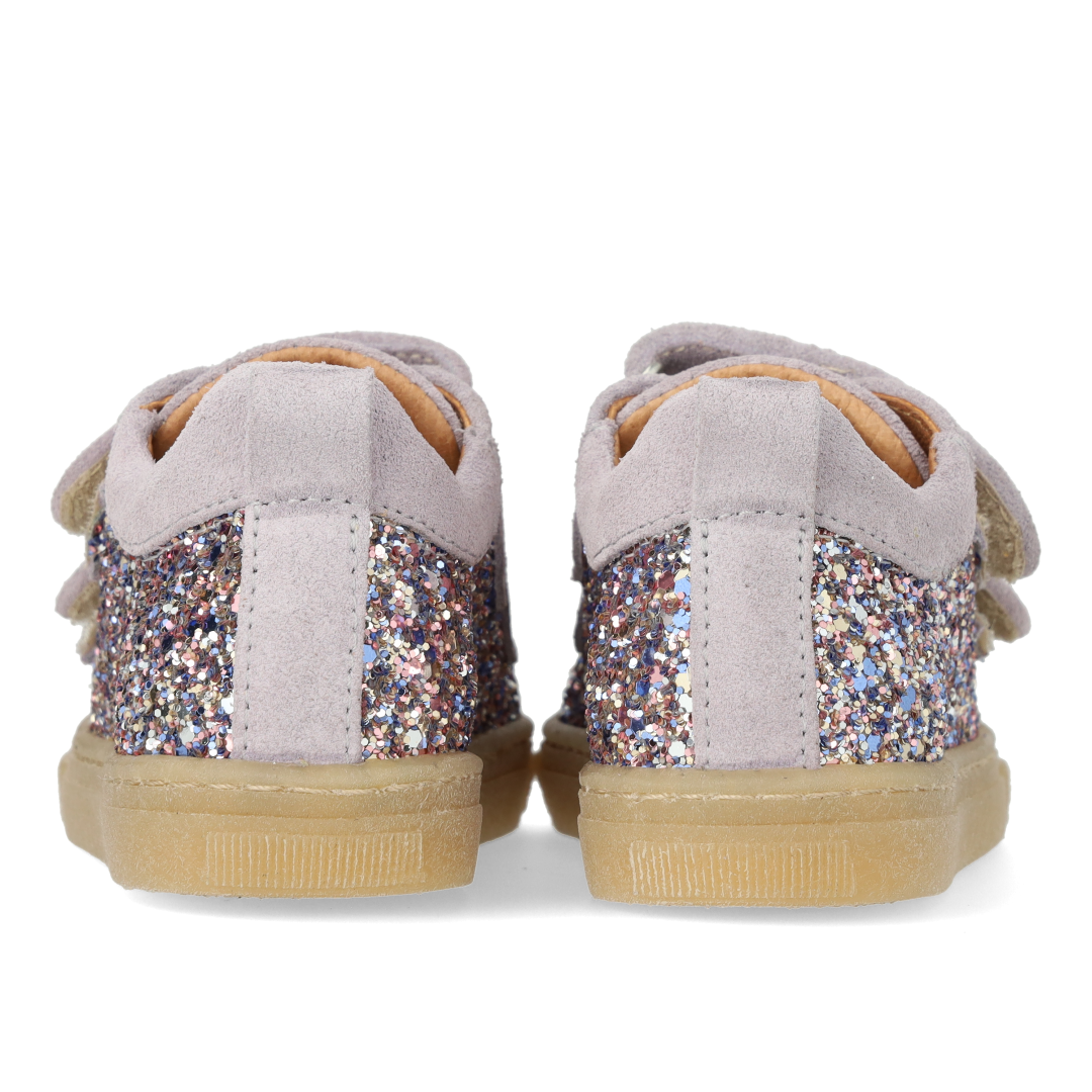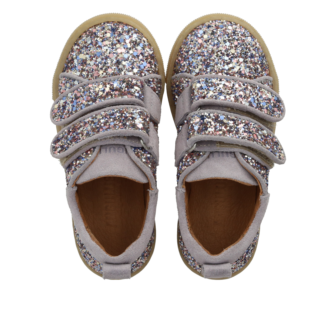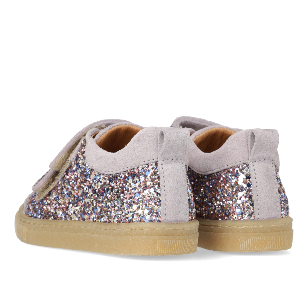 Funklende glitter-sneaker med ruskindskanter