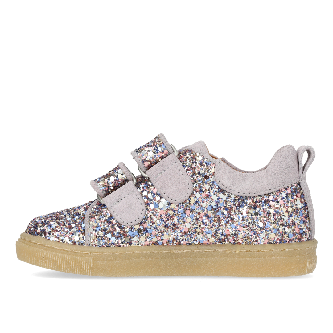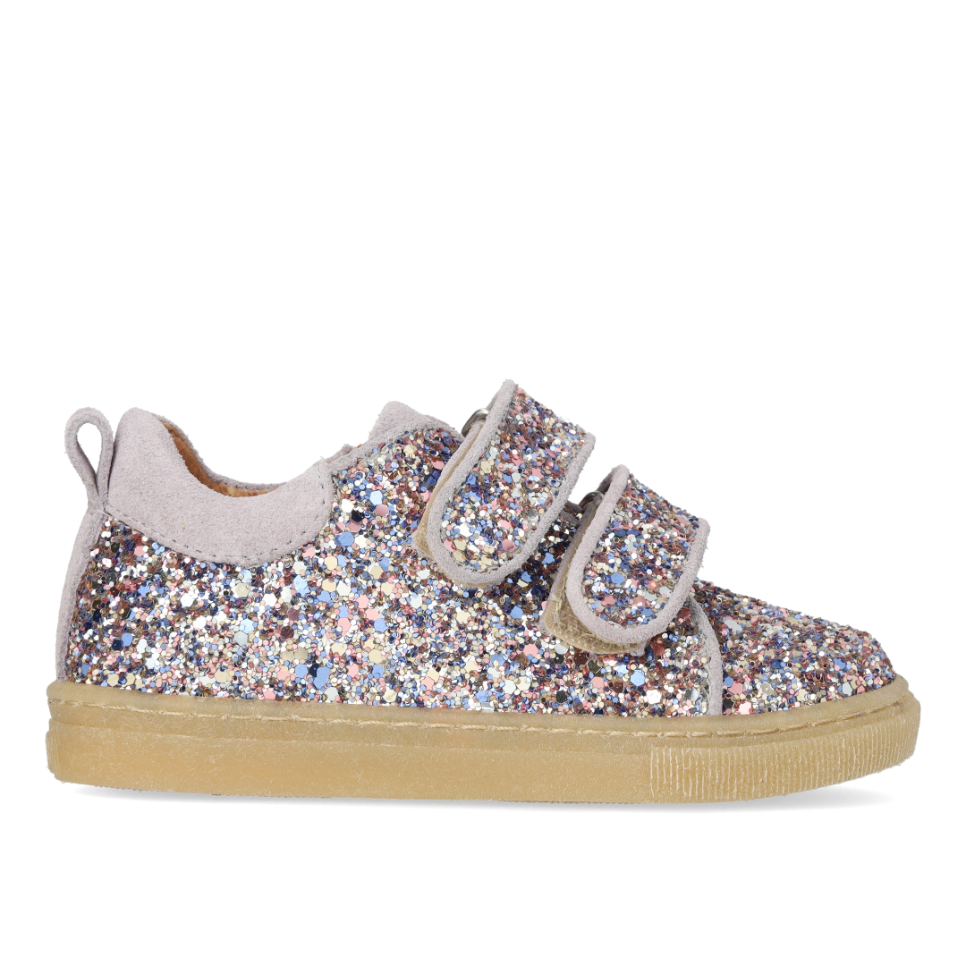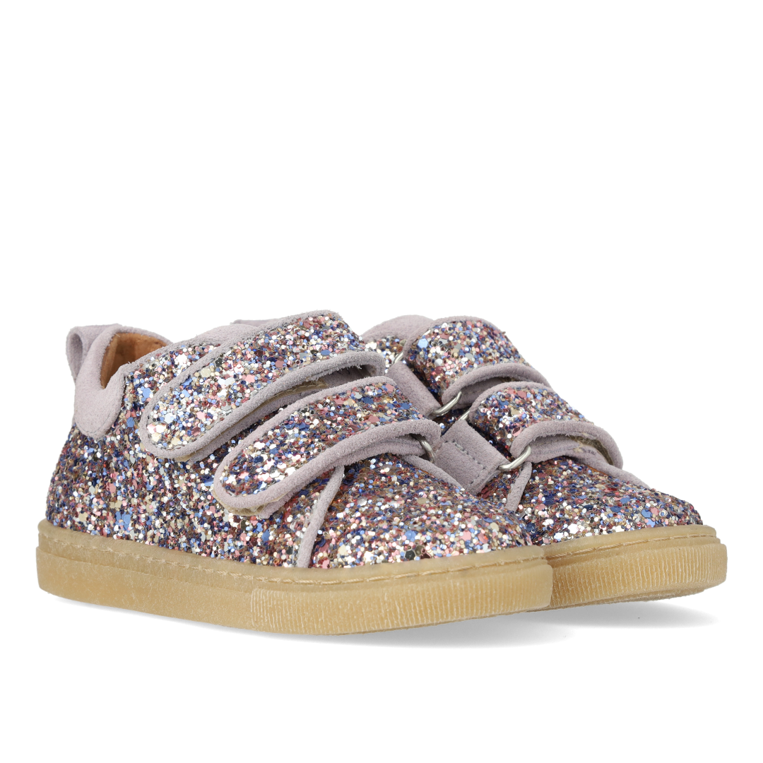 Funklende glitter-sneaker med ruskindskanter