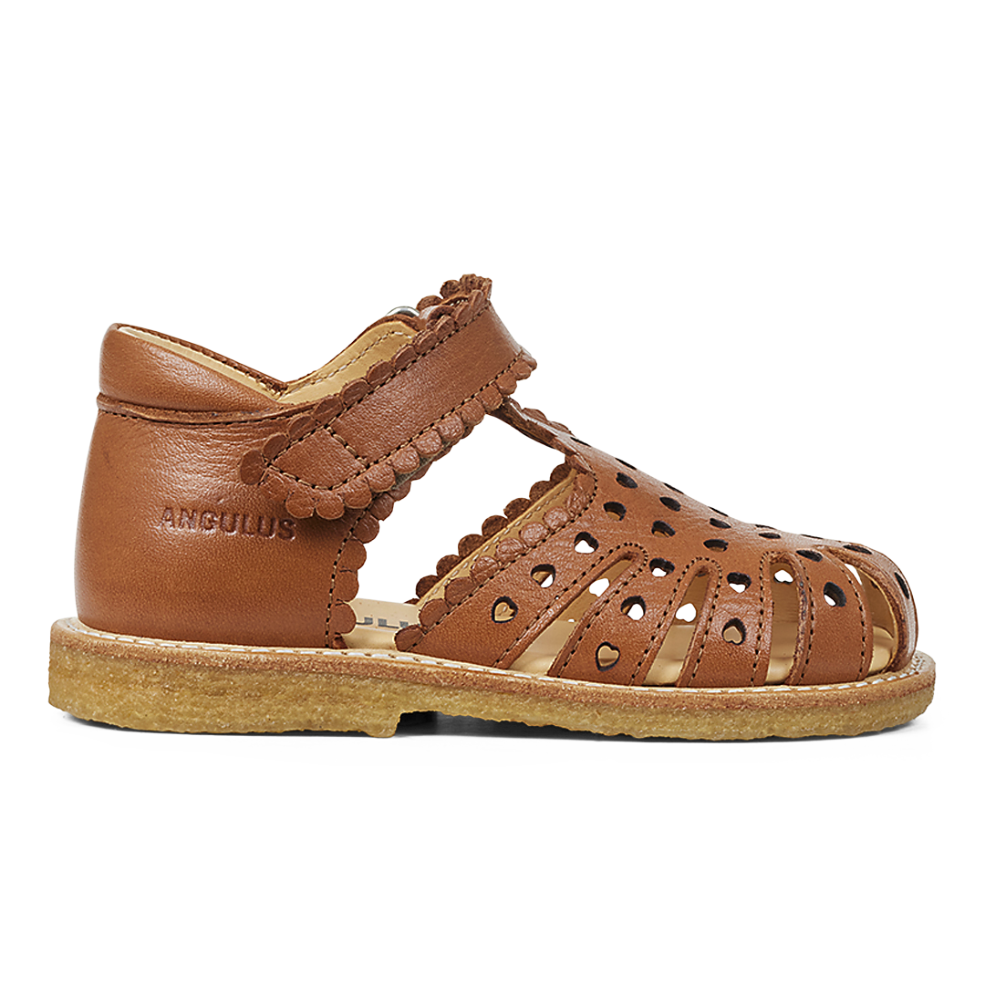 Begynder lædersandal med udstanset hjertemønster og dekorative bølgekanter. Sandalen har justerbar velcrolukning, præget logo ved hælen, lukket tå, vatteret indersål, kromfrit læderfoer, en fast hælkappe med polstret krave for ekstra komfort og støtte og en let, blød og fleksibel rågummisål i fornybart naturgummi. Udformet i naturligt og åndbart læder. Designet i Danmark og håndlavet med kærlighed i Portugal. Mål altid barnets fod inden du køber, så du får købt den rigtige størrelse. Vi anbefaler et voksetillæg på 1 cm.