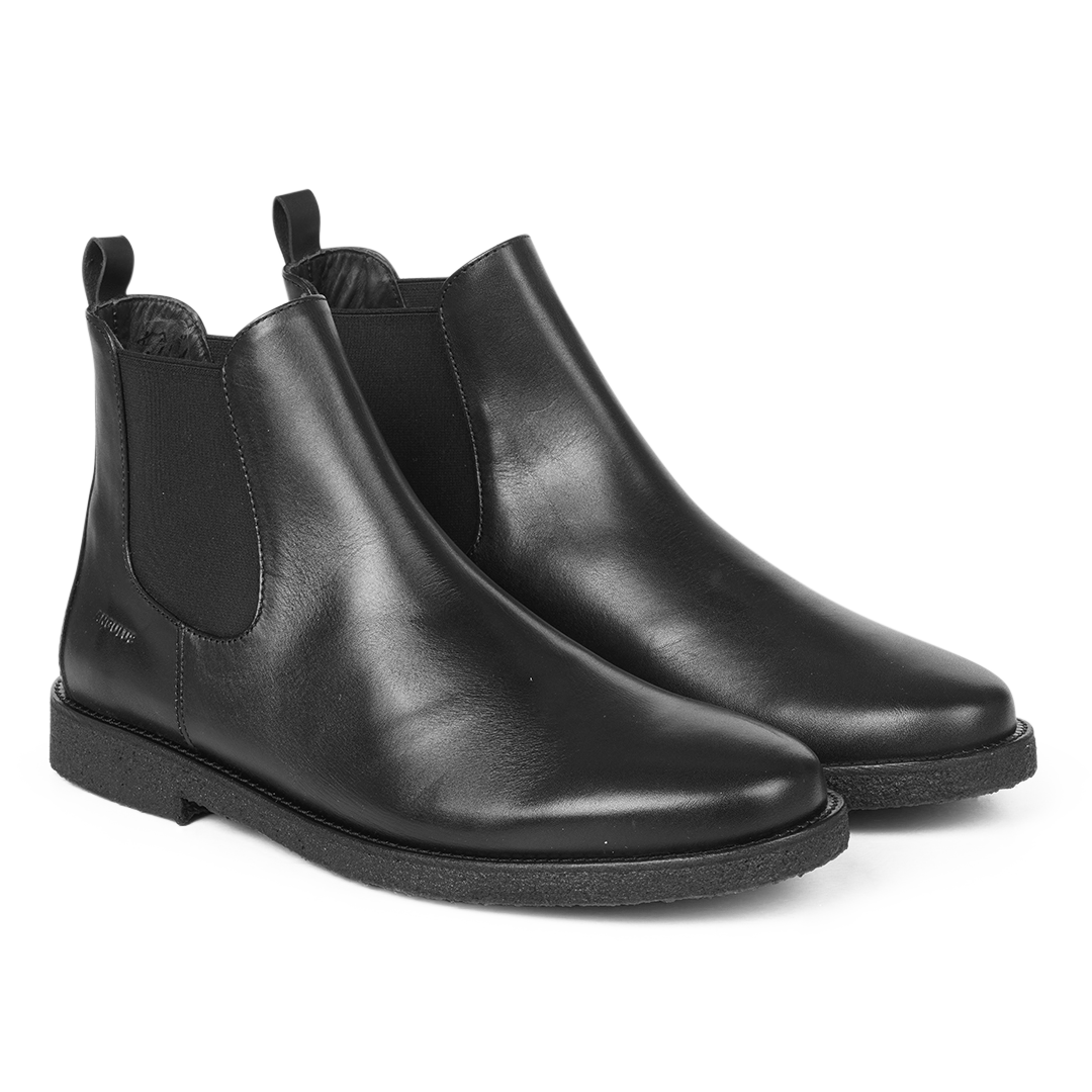 Støvlen har en mandelformet snude, funktionelle elastiksider, der gør støvlen nem at få af og på, hælstrop, vatteret indersål, kromfrit læderfoer og en blød og fleksibel sort rågummisål i fornybar naturgummi. Udformet i naturligt og åndbart skind. Designet i Danmark og håndlavet med kærlighed i Portugal.