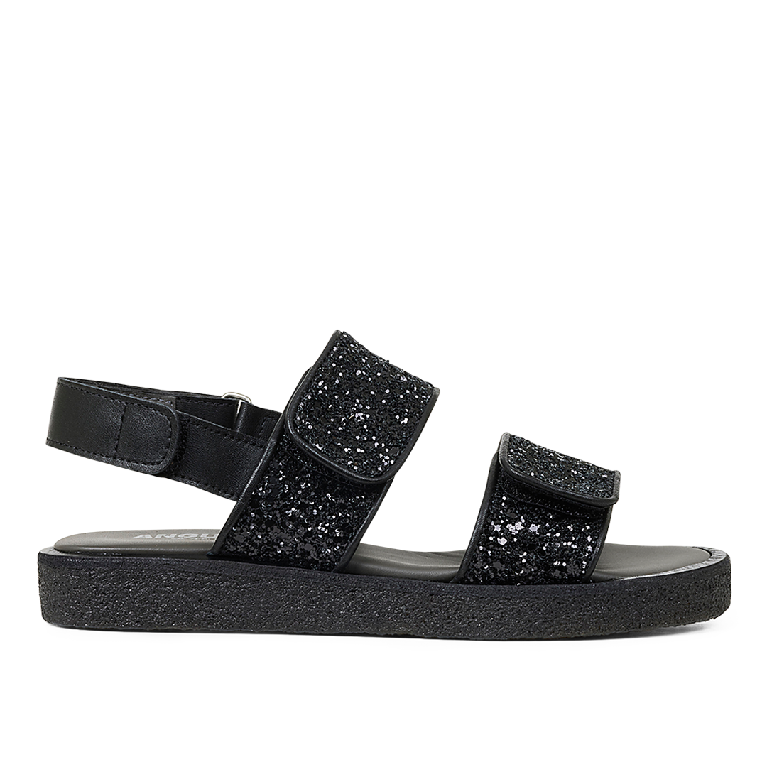 Funklende glittersandal med velcro. Sandalen har justerbare velcroremme, vatteret indersål, kromfrit læderfoer og en blød og fleksibel rågummisål i fornybart naturgummi. Udformet i naturligt og åndbart læder. Designet i Danmark og håndlavet med kærlighed i Portugal. Mål altid barnets fod inden du køber, så du får købt den rigtige størrelse. Vi anbefaler et voksetillæg på 0,8 cm.