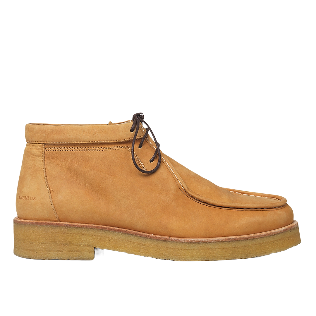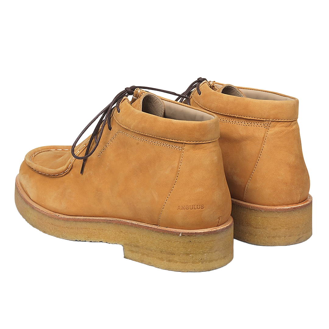 Casual lavskaftet snørestøvle i skind. Støvlen har en mandelformet snude, detaljestikninger, rand, fast hælkappe med polstret krave for ekstra støtte og komfort, præget logo ved hæl, vatteret indersål, læderfoer og en blød og fleksibel rågummisål i fornybar naturgummi. Udformet i naturligt og åndbart skind. Designet i Danmark og håndlavet med kærlighed i Portugal.