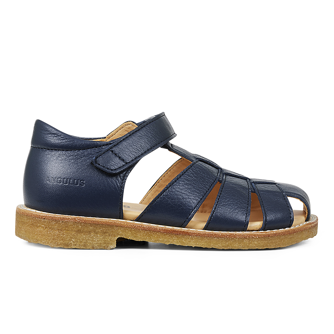 Klassisk lædersandal med rummelig pasform. Sandalen har justerbar velcrorem, lukket tå, vatteret indersål, kromfrit læderfoer, en fast hælkappe med præget logo og polstret krave for ekstra komfort og støtte og en let, blød og fleksibel rågummisål skåret med fokus på svangstøtte. Udformet i naturligt og åndbart læder. Designet i Danmark og håndlavet med kærlighed i Portugal. Mål altid barnets fod inden du køber, så du får købt den rigtige størrelse. Vi anbefaler et voksetillæg på 1 cm.
