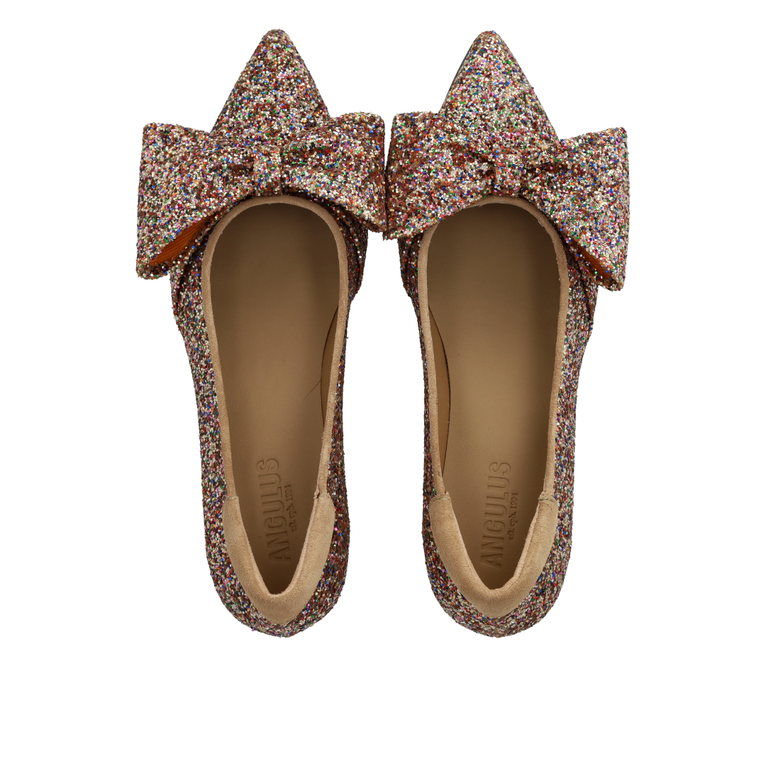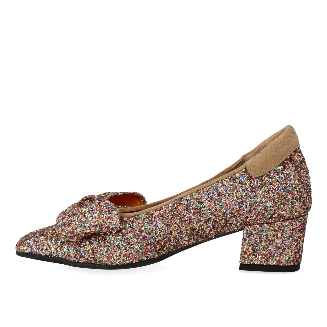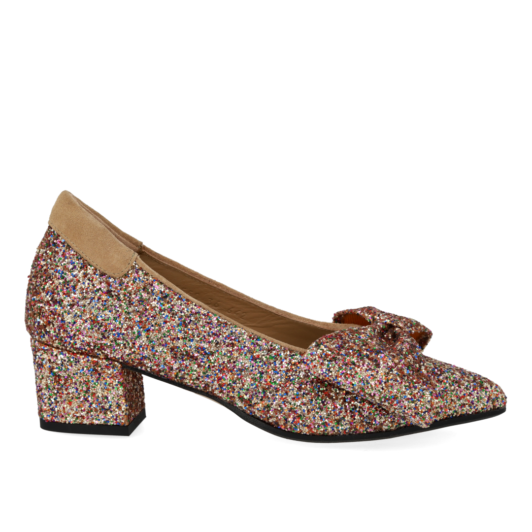 Sløjfe pump i funklende glitter