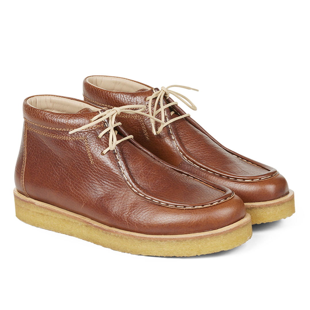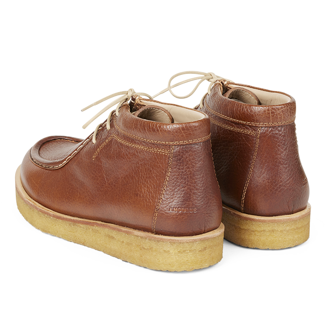 Snørestøvle med rummelig pasform og dekorativ rand. Skoen har en rundet snude, bomuldssnøre, let, blød og fleksibel rågummisål i fornybar naturgummi og en fast hælkappe med polstret top for ekstra support og komfort. Designet i Danmark og håndlavet med kærlighed i Portugal.