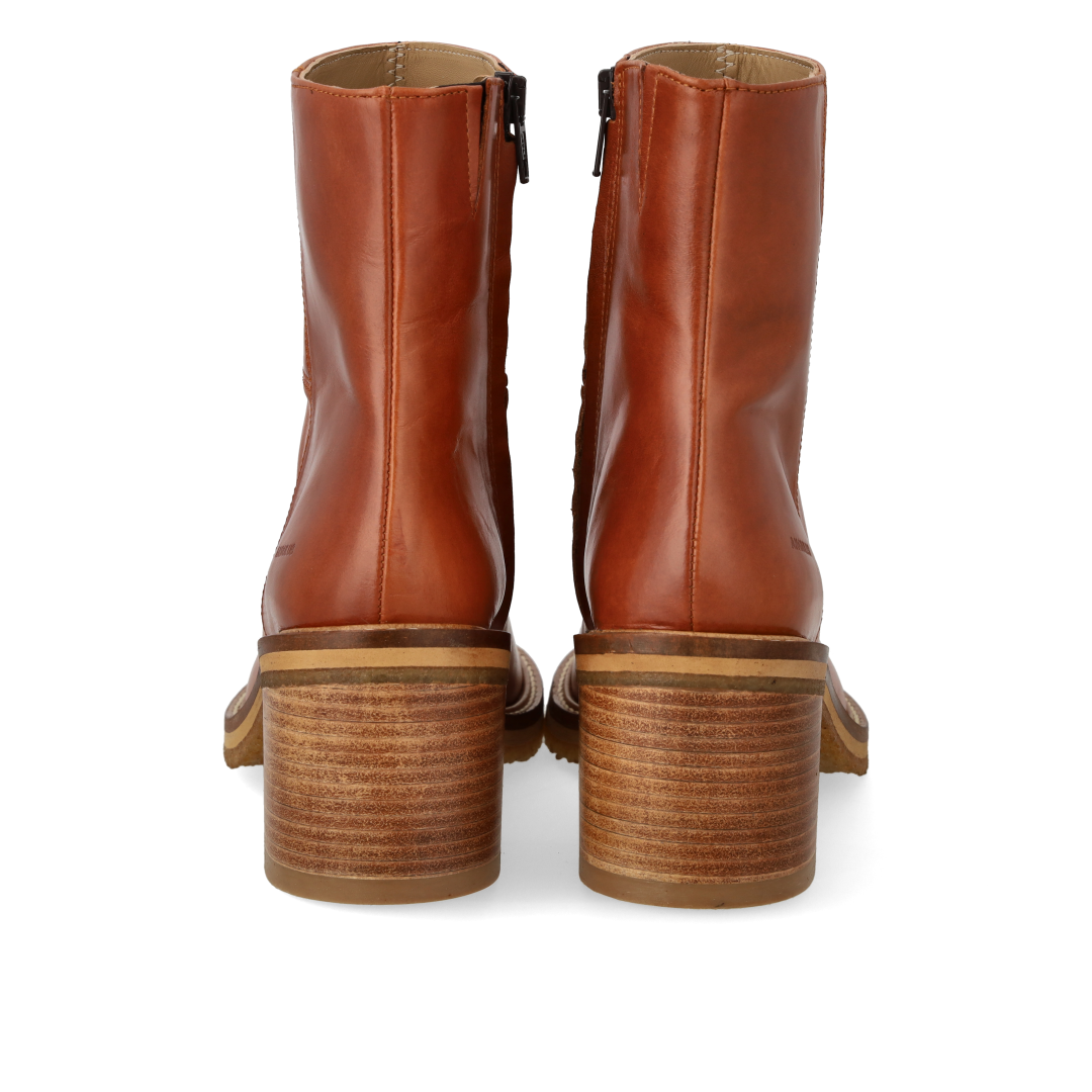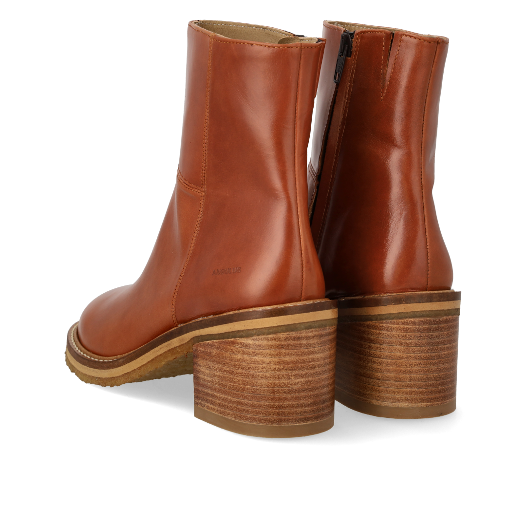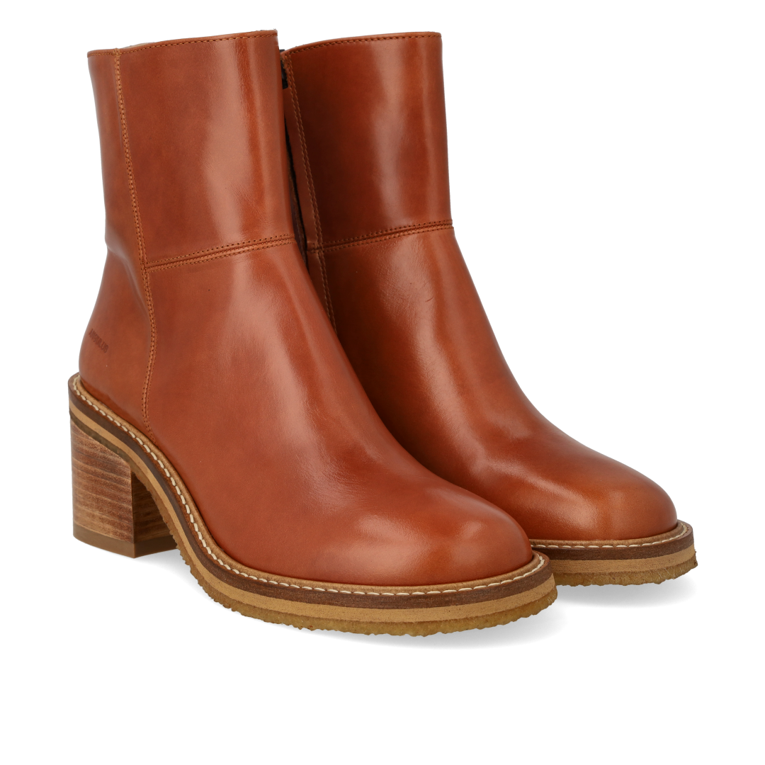 Læderstøvlet med 6 cm bred, grafisk hæl. Støvletten har en rund og rummelig snude, lynlås i den ene side, polstret indersål, dekorativ stikningsdetalje og en blød gummisål fortil for stabilitet og komfort. Designet i Danmark og håndlavet med kærlighed i Portugal.