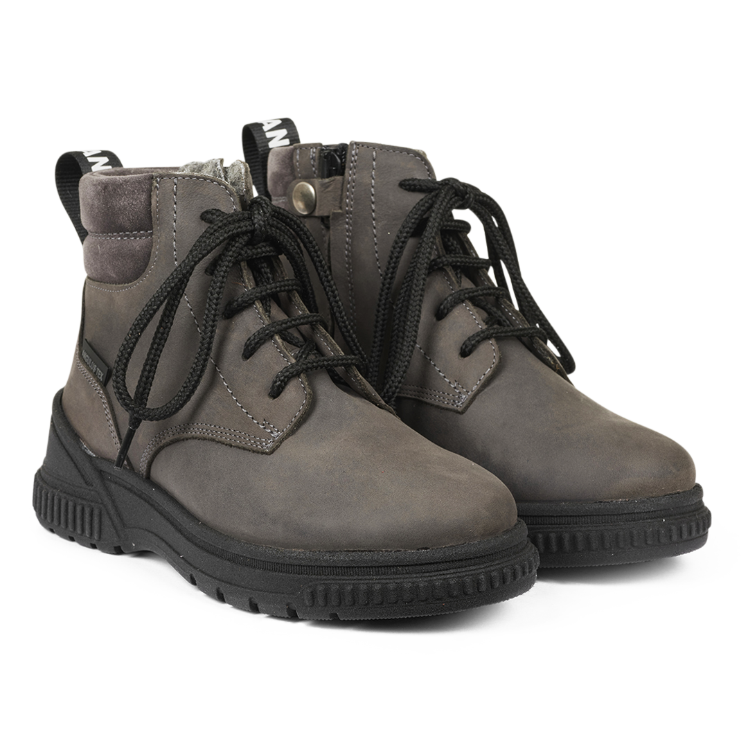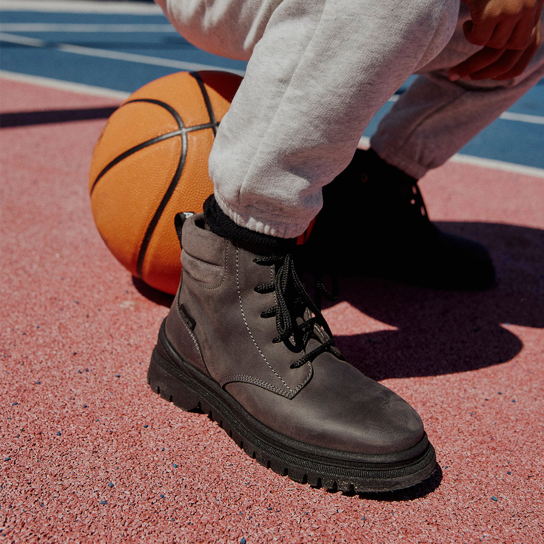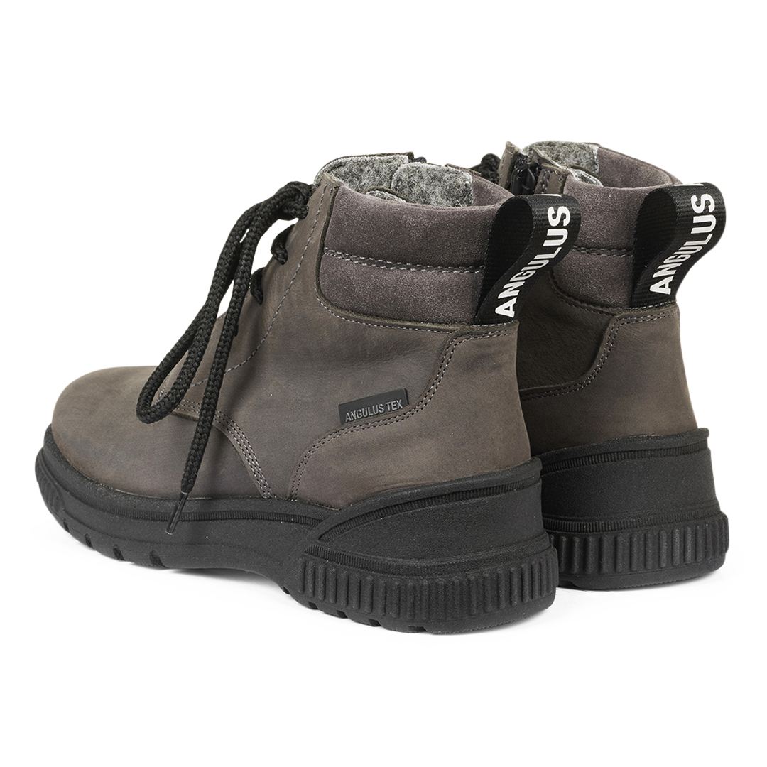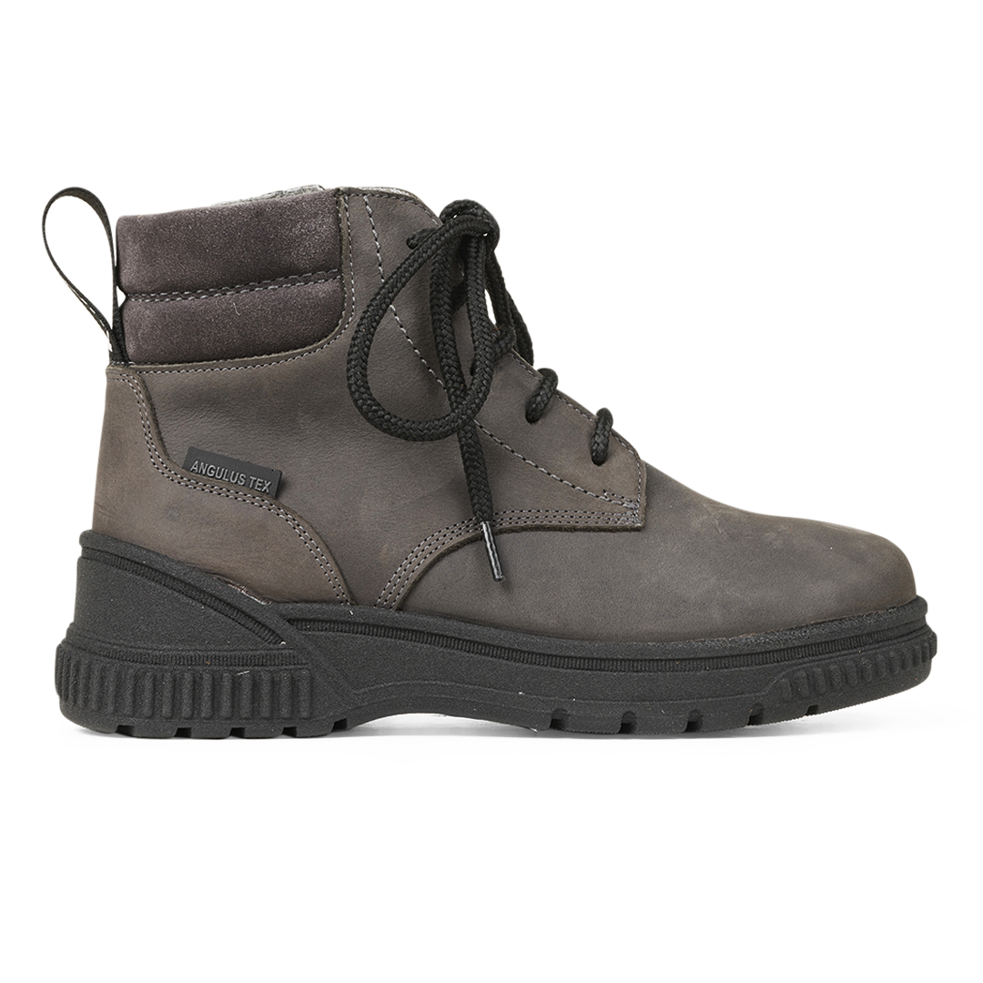 TEX-snørestøvle i olieret nubuck, der er både slidstærk og vandafvisende. Støvlen har en rund snude, nylon snørebånd, blød og fleksibel gummisål, lynlåslukning med trykknap i den ene side, kromfrit og åndbart uldfoer, logostrop og en vatteret ruskindsdetalje ved skaftets top for ekstra støtte og komfort. Støvlen har en chunky ANGULUS sål med ekstra stabil hæl. Udformet i naturligt og åndbart skind med PFAS-fri TEX-membran. Designet i Danmark og håndlavet med kærlighed i Portugal. Mål altid barnets fod inden du køber, så du får købt den rigtige størrelse. Vi anbefaler et voksetillæg på 1-1,5 cm.