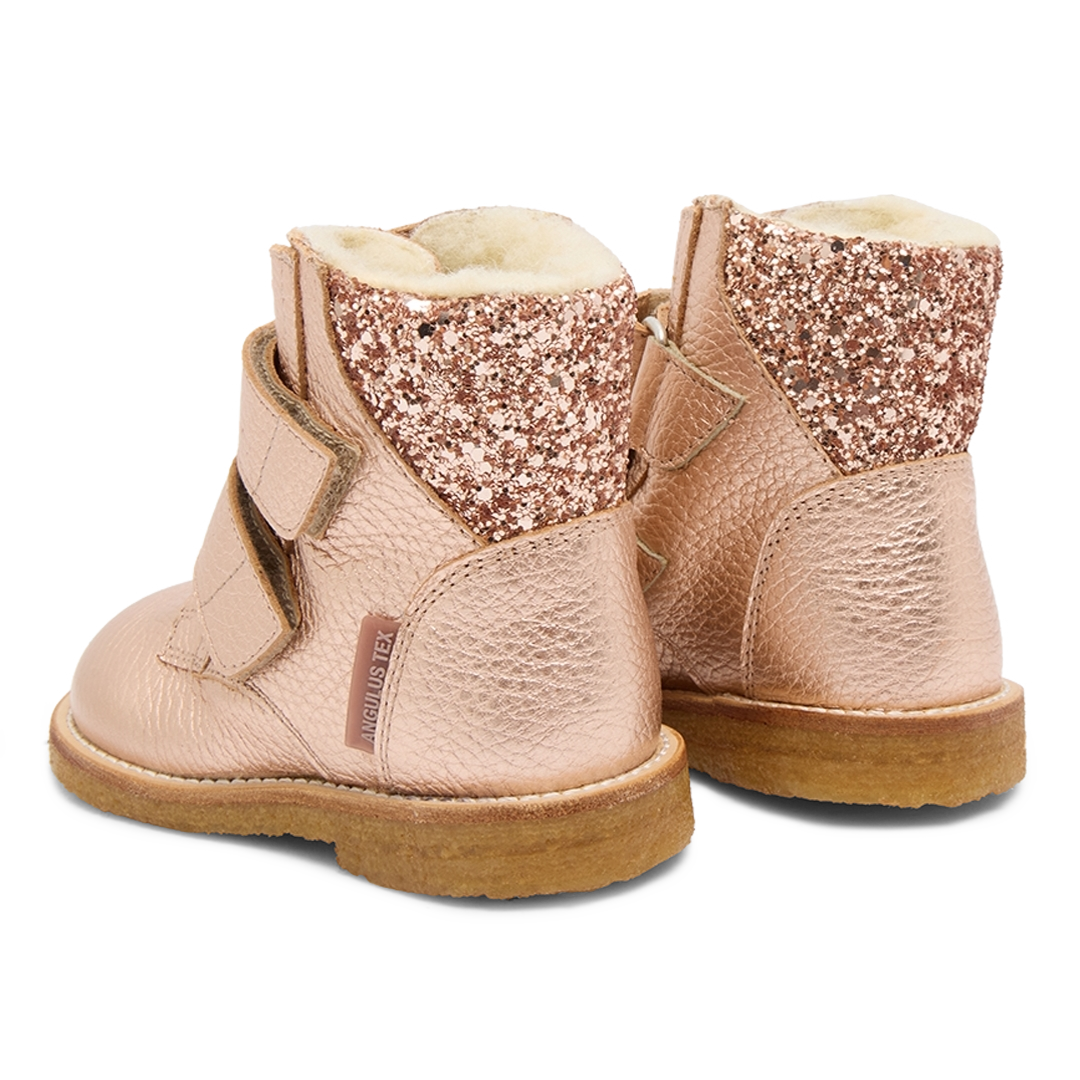 Begynder TEX-vinterstøvle i læder med funklende glitterdetalje bagpå, der er designet til at holde små fødder varme og tørre, uanset vejret. Støvlen har justerbare velcroremme, uldfoer, let, blød og fleksibel rågummisål i fornybar naturgummi samt en fast hælkappe med polstret krave for ekstra komfort og støtte. Udformet i naturligt og åndbart skind med PFAS-fri TEX-membran. Designet i Danmark og håndlavet med kærlighed i Portugal. Mål altid barnets fod inden du køber, så du får købt den rigtige størrelse. Vi anbefaler et voksetillæg på 1-1,2 cm.